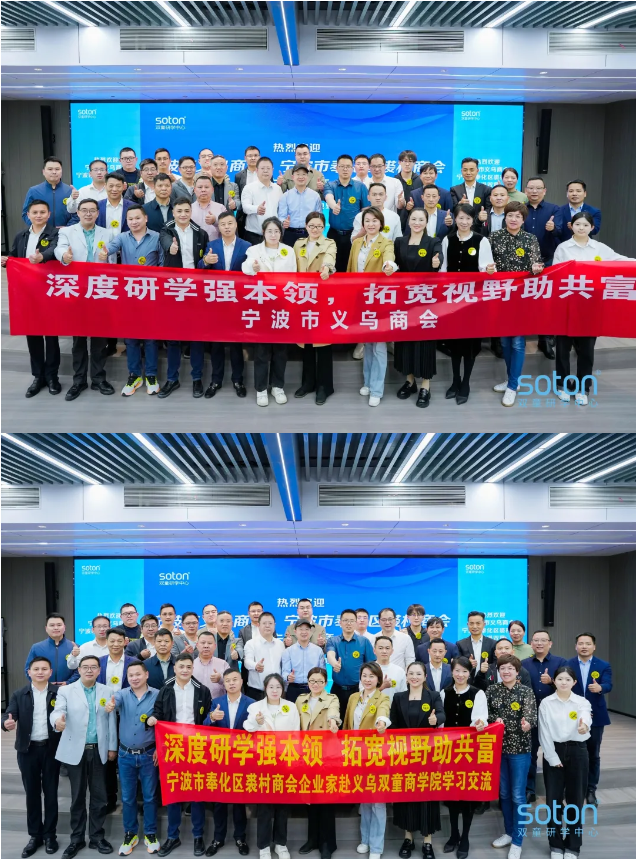 繼湖南商會(huì)之后,寧波市義烏商會(huì)攜奉化區(qū)裘村商會(huì)陶坑村一行在“深度研學(xué)強(qiáng)本領(lǐng),拓展視野助共富”主題返鄉(xiāng)研學(xué)活動(dòng)中,也將首個(gè)參觀站點(diǎn)定在了“雙童”。