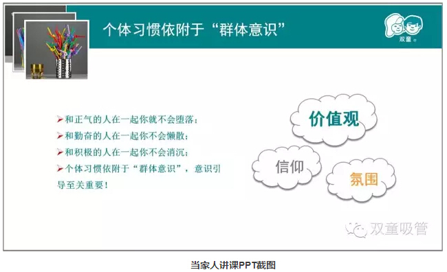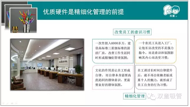 ”雙童“通過(guò)價(jià)值觀(guān)念、學(xué)習(xí)培訓(xùn)、制度規(guī)范、文化引導(dǎo)形成來(lái)影響員工,養(yǎng)成好的行為習(xí)慣!