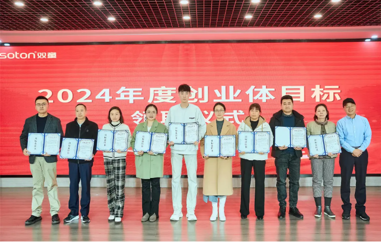 李橋(右三)在2024年年會(huì)上領(lǐng)取年度目標(biāo)