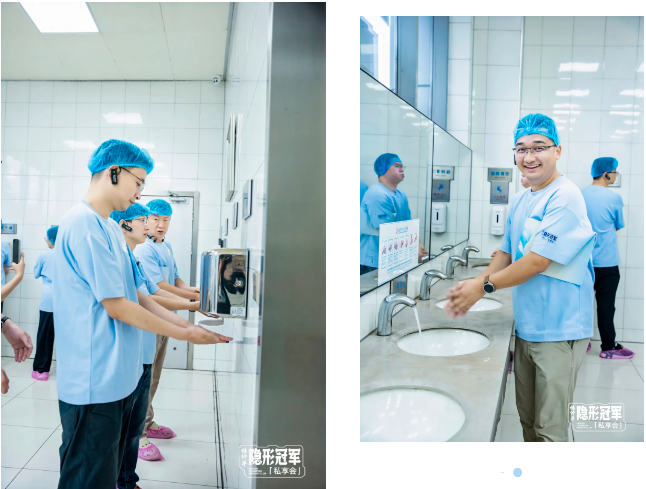 進(jìn)車間前,大家就感受到了車間管理的精細(xì)化,僅是進(jìn)入車間的動(dòng)作,就有6個(gè)步驟!