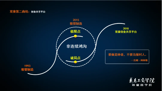 “雙童”在2016年,吸管板塊觸達行業(yè)天花板時,主動突破“一根吸管”的局限,尋找企業(yè)發(fā)展的“第二曲線”,逐漸從傳統(tǒng)制造業(yè)向平臺化賦能轉(zhuǎn)型。