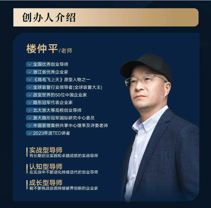 “隱形冠軍樓仲平思享薈”是樓仲平老師唯一一個(gè)全面系統(tǒng)交付46年創(chuàng)業(yè)歷程的經(jīng)驗(yàn)總結(jié)和思維模型的課程。