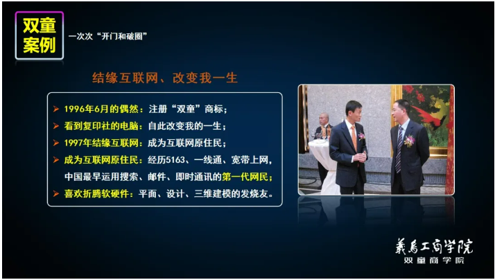 早在1996年注冊(cè)“雙童”商標(biāo)時(shí),自己就開(kāi)始學(xué)習(xí)電腦應(yīng)用,成為中國(guó)互聯(lián)網(wǎng)的原住民。并在數(shù)字化工具加持下,為“雙童”率先打開(kāi)了國(guó)際市場(chǎng),短短幾年時(shí)間,超越同行,奠定了成為行業(yè)冠軍的基礎(chǔ)。