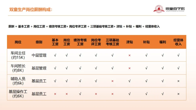 該課程是以“雙童”自身非常完善、成熟的薪酬績效結(jié)構(gòu)為依托,師資團(tuán)隊(duì)也非傳統(tǒng)意義上的學(xué)術(shù)派老師,而是由雙童的核心管理團(tuán)隊(duì)組成。他們從實(shí)踐的角度出發(fā),把各自在管理崗位上躬耕數(shù)十年的實(shí)戰(zhàn)經(jīng)驗(yàn)毫無保留地交付給學(xué)員。