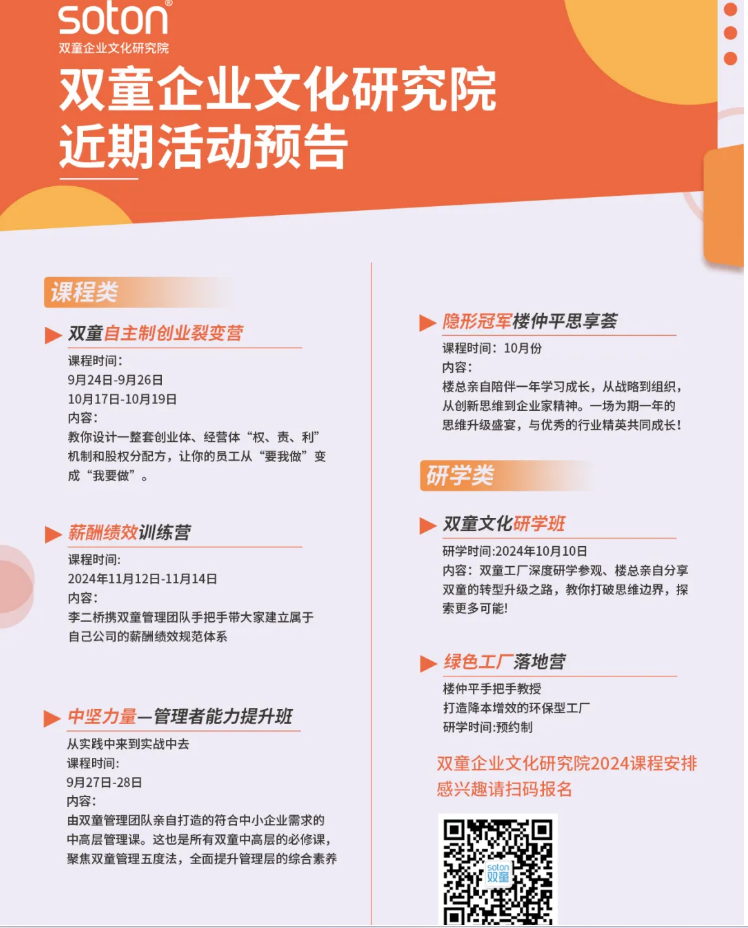 企業(yè)管理者,要把握好不同員工精神欲望,要勾起這種欲望,就要求管理者懂人性、識人心。所以,在“雙童”這種開放包容的企業(yè)組織下,大家都愿意交流,不同思想碰出火花,員工認知就提升了,積極的情緒又驅(qū)動行為的產(chǎn)生,創(chuàng)新的概率由此增加,生產(chǎn)力自然而然也就提高了!