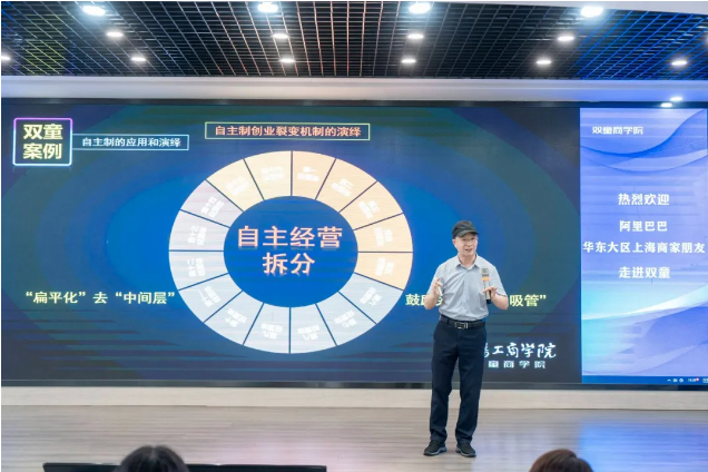 現(xiàn)場(chǎng)課堂座無(wú)虛席,氣氛熱烈。創(chuàng)始人樓仲平為大家分享了《“一根吸管”的破界創(chuàng)新》主題課程,深入淺出地分享了他的寶貴經(jīng)驗(yàn)。在講述中,他回顧了與阿里巴巴結(jié)緣超過(guò)20年的歷程,并詳細(xì)闡述了“雙童”這家中小企業(yè)如何在數(shù)字化轉(zhuǎn)型的大潮中乘風(fēng)破浪,一路走來(lái)所經(jīng)歷的挑戰(zhàn)與成就。