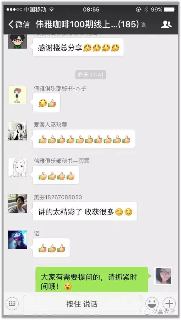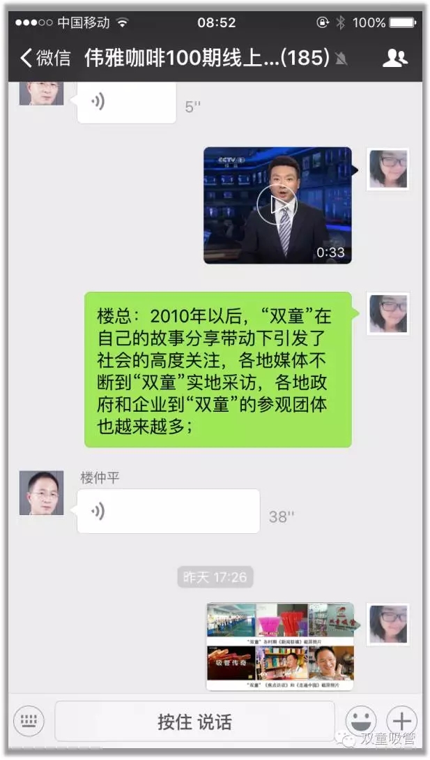 7月27日下午,吸管妞早在微信上預(yù)告過的上海偉雅網(wǎng)商俱樂部如期開始了偉雅咖啡線上沙龍!當(dāng)家人樓總首次在微信上進(jìn)行線上直播課程,與近200號(hào)管理精英分享《雙童”是如何“講故事”的》課程,效果到底如何?我們趕緊來回顧一下!