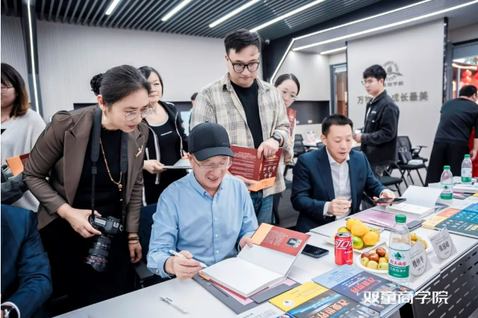 在最后的簽書環(huán)節(jié),現(xiàn)場讀者代表朋友更是熱情高漲,將主編蘇勇老師和企業(yè)家代表樓仲平兩位圍得“水泄不通”~