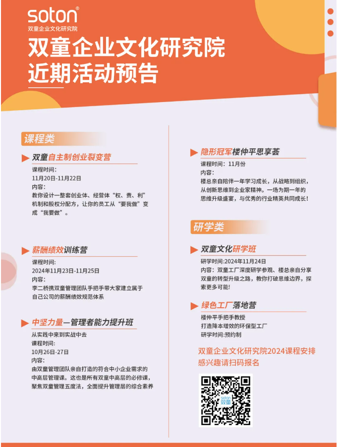 雙童商學(xué)院將通過本次展會,向更多中小企業(yè)傳播雙童的文化、經(jīng)營理念,讓更多人認(rèn)識這個實戰(zhàn)類創(chuàng)業(yè)教育培訓(xùn)的商學(xué)院。