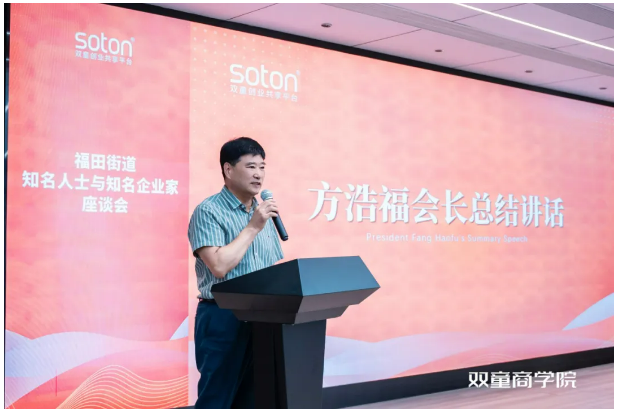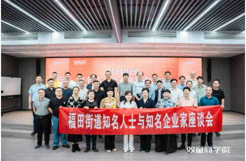現(xiàn)場參觀結(jié)束后,福田街道班子成員、福田籍知名人士及轄區(qū)知名企業(yè)家走進“雙童”第三教室進行座談。