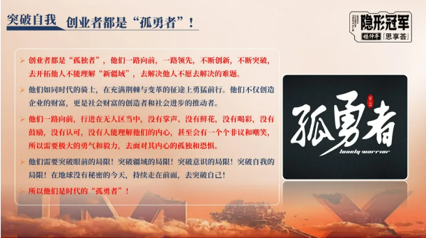 也正是因?yàn)楣陋?dú),創(chuàng)業(yè)者們才能深度思考,才能擺脫群體干擾保持思想獨(dú)立,去創(chuàng)造出獨(dú)特的“差異化經(jīng)營”。所以,樓老師也在課上鼓勵(lì)弟子班的同學(xué)們:創(chuàng)業(yè)者要學(xué)會(huì)享受孤獨(dú)!