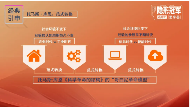 認(rèn)識(shí)世界才能更好的改變世界,但在范式轉(zhuǎn)換(時(shí)代轉(zhuǎn)變)下,過(guò)往的經(jīng)驗(yàn)很難建立長(zhǎng)久持續(xù)的有效認(rèn)識(shí),所以創(chuàng)業(yè)者需要不斷提升自己的認(rèn)識(shí)和認(rèn)知能力,才能應(yīng)對(duì)變化,解決越來(lái)越難的難題。