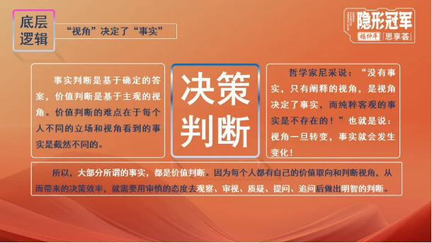 所以,比“事實(shí)”更重要的,是對(duì)事實(shí)的認(rèn)知和運(yùn)用抽象邏輯思考的方式。創(chuàng)業(yè)者在經(jīng)營(yíng)企業(yè)的過(guò)程中,要學(xué)會(huì)用“問(wèn)題視角”去思考分析,用審慎的態(tài)度去觀察、審視、質(zhì)疑、提問(wèn)、追問(wèn)后做出明智的判斷。