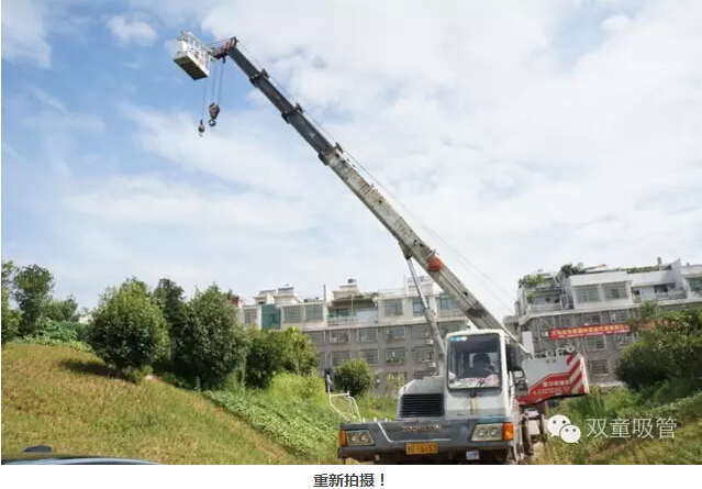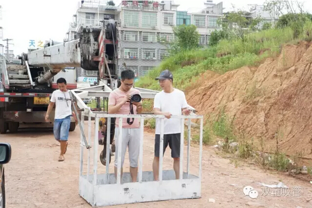 周一的清晨,當(dāng)家人樓總早早地就來到了公司,而在公司門口,還停著一輛大吊機!用吸管君的話說,這是要搞事情啊!果然,不一會兒,幾個拿著專業(yè)攝影機的攝影師也來到了公司,大家伙一起來到了“雙童”的斜對面,當(dāng)家人說,我們要隔著北苑路這條大馬路,借助近50米高的大吊機,拍攝“雙童”廠房全景!