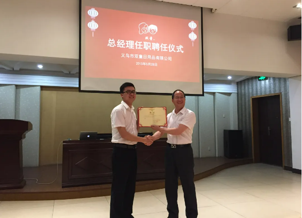 每天生活在老板眼皮底下,這個(gè)過程自然非?!巴纯唷?,但對于個(gè)人成長來說,卻意義重大。因?yàn)樵跇强偟亩δ咳鞠拢麑W(xué)會了精益求精的態(tài)度,嚴(yán)謹(jǐn)?shù)乃季S,目光長遠(yuǎn)的規(guī)劃,結(jié)果導(dǎo)向的管理思維,這些都為他后續(xù)的轉(zhuǎn)變做了很好的鋪墊。一路升級打怪,在2015年,李二橋被正式任命為雙童日用品總經(jīng)理。“視角”決定“事實(shí)”,“視角”決定“思想”。所以成為總經(jīng)理之后,他的第一個(gè)挑戰(zhàn)就是要放棄自己擅長的工作。2015年5月28日聘任為雙童公司總經(jīng)理