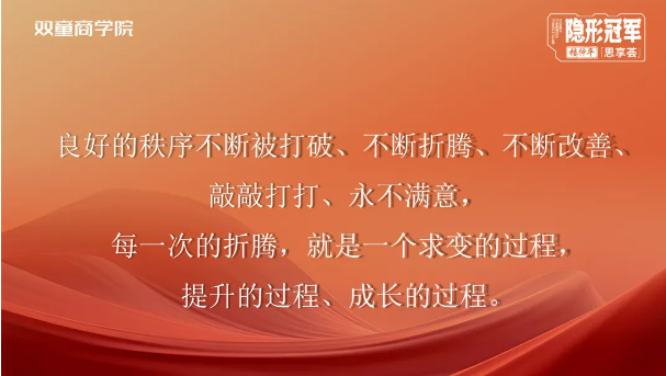 輸出是最好的輸入。通過這兩年的講課、分享,雙童管理團(tuán)隊(duì)的表達(dá)能力、管理能力也得到顯著的提升。雙童曾經(jīng)經(jīng)歷過“新老團(tuán)隊(duì)交接”的陣痛,所以這種轉(zhuǎn)型,也是在為將來需要退居二線的管理者們提前鋪路。雙童的管理團(tuán)隊(duì),也開始陸續(xù)走上講臺2023年,李二橋被任命為平臺的總經(jīng)理,對于企業(yè)經(jīng)營又有了更深的見解。首先是“把權(quán)力關(guān)進(jìn)籠子里”,以往他可能很喜歡在辦公室指點(diǎn)江山,享受別人排隊(duì)讓他決策的時(shí)刻,但現(xiàn)在他意識到這恰恰說明了企業(yè)管理的不規(guī)范,很多的問題還是人治。如何把靠人治的東西轉(zhuǎn)化為規(guī)則,轉(zhuǎn)化為制度,是當(dāng)前要做的。