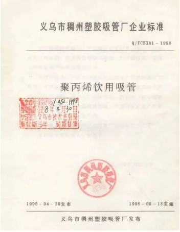 雙童的第一件企業(yè)標(biāo)準(zhǔn)是在1998年4月30日發(fā)布的,也是中國(guó)的第一份吸管標(biāo)準(zhǔn)。那時(shí)候義烏的小商品普遍以低、小、散、弱為特點(diǎn),但是雙童沒(méi)有隨波逐流,堅(jiān)持走標(biāo)準(zhǔn)化之路,后來(lái)又做了產(chǎn)業(yè)標(biāo)準(zhǔn)、地方標(biāo)準(zhǔn)、國(guó)家標(biāo)準(zhǔn),包括國(guó)際標(biāo)準(zhǔn)。雙童第一件企業(yè)標(biāo)準(zhǔn),目前已被義烏市博物館收藏展出