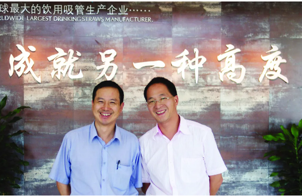 第二天早上,他就背著電腦從他租的房子里搬到我工廠來。當時我的工廠還很小,七八十人,但就因為他的引進,完全改變了雙童!那一年雙童從內(nèi)貿(mào)轉(zhuǎn)到外貿(mào),利潤率大幅提高!因為他的英語、數(shù)字化應(yīng)用這些東西都很熟練,我們兩個人搭檔強強聯(lián)合,“雙童”在99年、00年、01年這三年,每年都能翻一番!因為吸管結(jié)緣,惺惺相惜