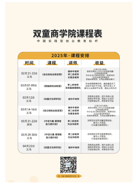 如果你也對(duì)“雙童”充滿好奇,也想賦能團(tuán)隊(duì)共同成長(zhǎng),歡迎走進(jìn)3月12日【雙童文化研學(xué)班】,與上百位優(yōu)秀的創(chuàng)業(yè)者一起學(xué)習(xí)!少量名額,歡迎咨詢鎖定!