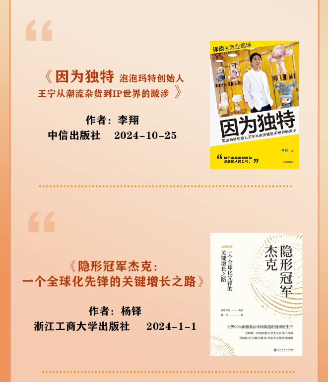 該榮譽由機械工業(yè)出版社華章分社首席策劃王磊、華中科技大學(xué)出版社大眾分社社長亢博劍、《企業(yè)家》雜志社社長/企業(yè)管理出版社副社長王仕斌、《中國民商》雜志執(zhí)行社長張立棟、《商界評論》主編/重慶盈科投資合伙人唐亮、新一代企業(yè)傳記作家/潤商文化創(chuàng)始人兼總裁陳潤等專業(yè)人士擔任評委,共同評選見證,含金量超高!