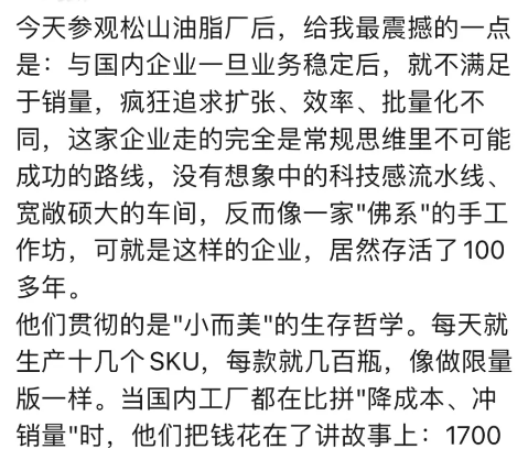 與國(guó)內(nèi)企業(yè)一旦業(yè)務(wù)穩(wěn)定后,就不滿足于銷量,瘋狂追求擴(kuò)張、效率、批量化不同,這家企業(yè)走的完全是常規(guī)思維里不可能成功的路線,沒(méi)有想象中的科技感流水線、寬敞碩大的車間,反而像一家"佛系"的手工作坊,可就是這樣的企業(yè),居然存活了100多年。