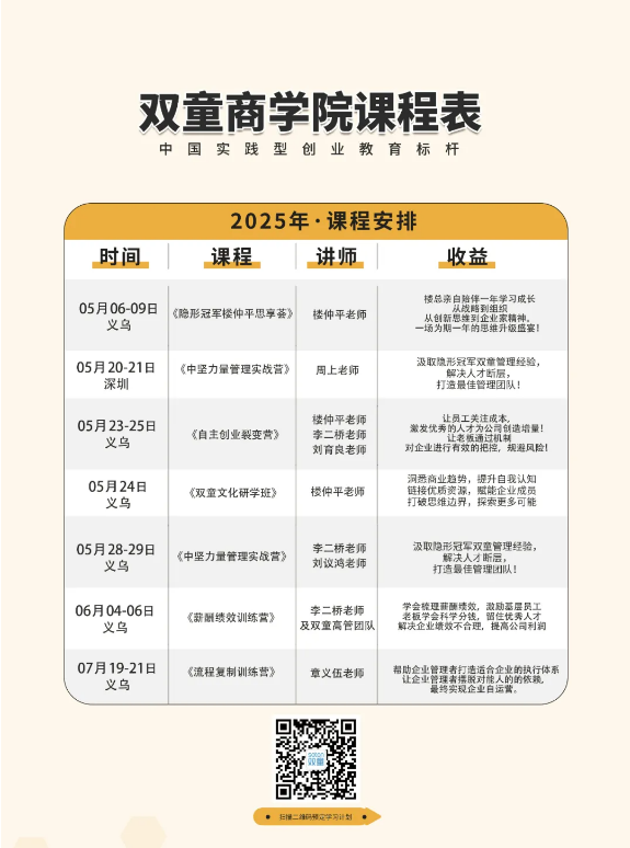 在他的帶領(lǐng)下,“雙童”在過(guò)往31年發(fā)展歷程中,穿越了一個(gè)個(gè)越來(lái)越難的經(jīng)營(yíng)周期,并始終充滿韌性與活力!相信他的創(chuàng)業(yè)經(jīng)驗(yàn)和商業(yè)智慧也一定可以助力更多新生代創(chuàng)業(yè)者成長(zhǎng)!