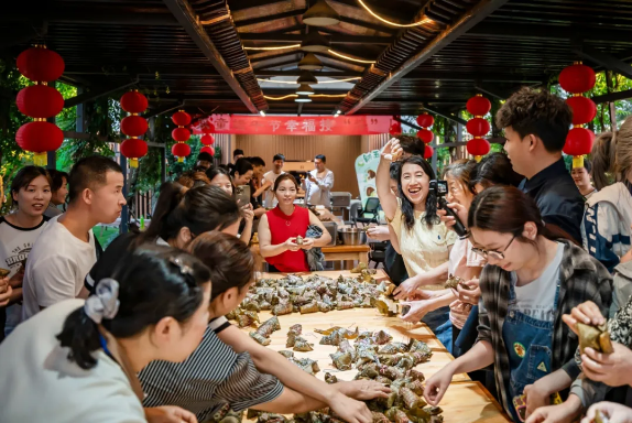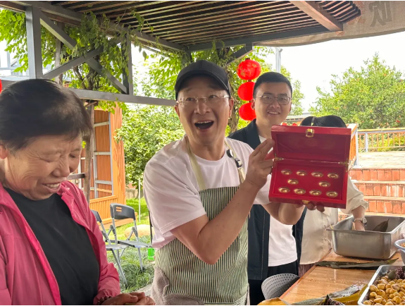 正好也到飯點(diǎn)了,大家也絲毫不拘謹(jǐn),大口大口吃著粽子,不到一分鐘的時(shí)間,現(xiàn)場幾乎同時(shí)出現(xiàn)了好幾個(gè)吃到黃金粽的幸運(yùn)星!