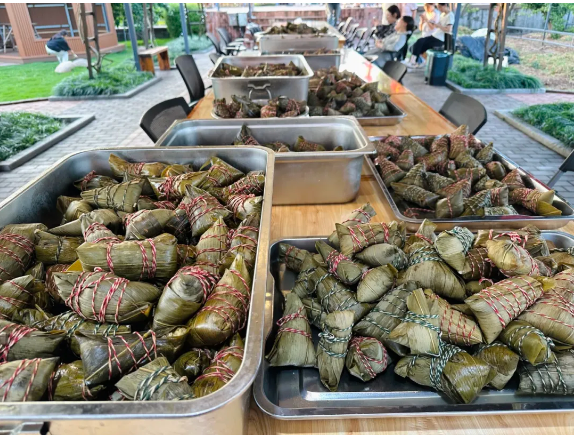 今年后勤部門也是早早地為大家準(zhǔn)備好了各種粽子餡料,肥糯五花肉、寓意高中的狀元豆… 統(tǒng)統(tǒng)安排上啦!滿足五湖四海的雙童人口味,全都真材實(shí)料看得見!