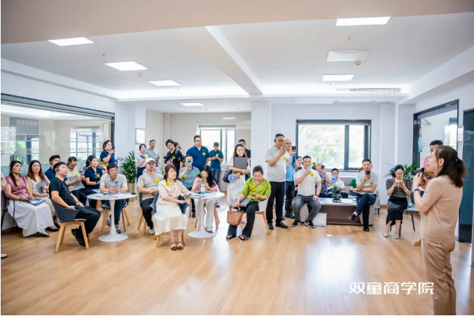 樓老師向?qū)W員們介紹道:面對當(dāng)下越來越卷的行業(yè)競爭,他放棄內(nèi)卷的不良循環(huán),毅然帶領(lǐng)"雙童"突破“一根吸管”的局限,突破路徑依賴,打開組織邊界,進(jìn)行破界創(chuàng)新,鼓勵"雙童"員工拓展“第二曲線”,并在2018年出資為員工搭建了創(chuàng)業(yè)共享平臺,激發(fā)員工積極性,完成從員工到管理者的身份轉(zhuǎn)變,實現(xiàn)共同富裕!