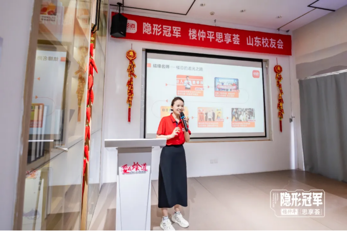 在專題分享環(huán)節(jié),燴道運(yùn)營總經(jīng)理吳春云先是介紹了與雙童的結(jié)緣之路。2024年在山東淄博的一次活動上,吳總首次聽到樓仲平老師的分享,被他的經(jīng)營理念所深深吸引,先后帶領(lǐng)公司小伙伴超30人次走進(jìn)雙童研學(xué)以及深度學(xué)習(xí)自主創(chuàng)業(yè)裂變機(jī)制。