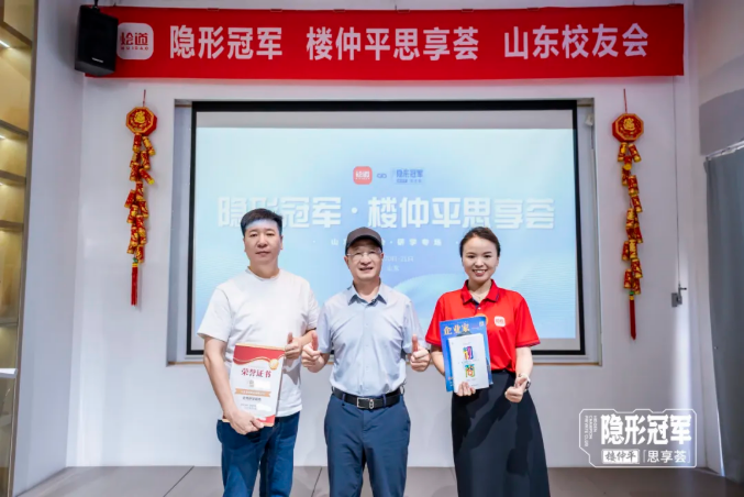 交流會現(xiàn)場,燴道創(chuàng)始人朱濤和運(yùn)營總經(jīng)理吳春云接過“隱形冠軍·樓仲平思享薈優(yōu)秀研學(xué)基地”榮譽(yù)證書,樓仲平老師還為其贈書,祝愿燴道穿越周期、基業(yè)長青!
