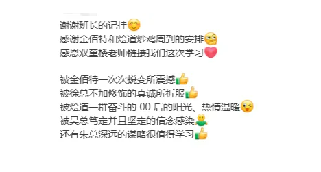 從燴道辦公區(qū)域墻壁上的核心價值觀,到生產(chǎn)一線精準(zhǔn)執(zhí)行的管理細(xì)則,大家直觀感受到了“以奮斗者為本”的理念如何滲透到企業(yè)肌理、融入日常運(yùn)營;通過觀摩一線車間的操作與管理流程,研學(xué)標(biāo)準(zhǔn)化在提高生產(chǎn)效率、保障產(chǎn)品品質(zhì)中的重要作用。