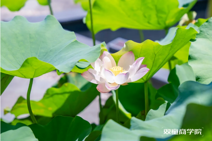 "接天蓮葉無窮碧,映日荷花別樣紅"。漫步在"雙童"景觀池的小橋上,撲面而來的蓮香瞬間驅散了盛夏的燥熱。荷花婀娜多姿地盛放,引得無數“雙童”游學學員拿出手機“咔嚓”幾聲,留下動人影像。