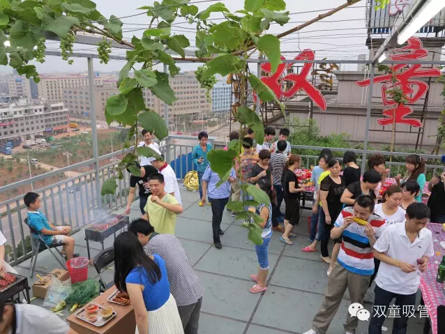 6、大夏天的晚上,九樓樓頂涼風(fēng)習(xí)習(xí),辦一個屋頂燒烤生日會,讓大家自己動手,體驗一下燒烤的樂趣!當(dāng)夜晚降臨,音樂響起,我們隨著音樂邊燒烤邊聊天,吃點水果唱著歌。當(dāng)家人樓總親自為我們切蛋糕唱生日歌,壽星們本著“生日我最大”的原則,硬是把當(dāng)家人扮成了一只大花貓……