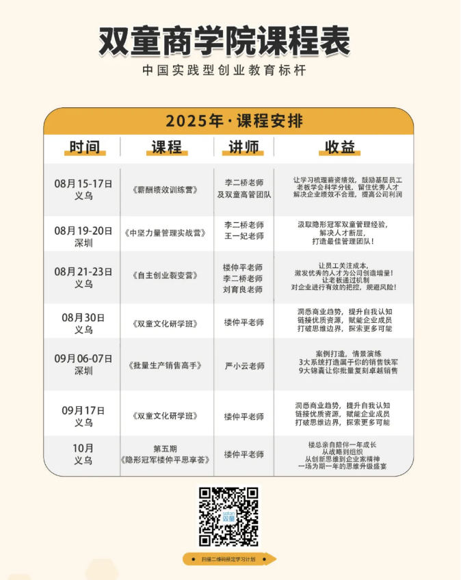迄今,該課程體系已惠及并深度影響超過3000家企業(yè),不僅實證了“自主創(chuàng)業(yè)裂變機制”理念的科學(xué)性與實效性,更為推動構(gòu)建“雙童式”共同富裕新范式奠定了堅實的示范基礎(chǔ)。