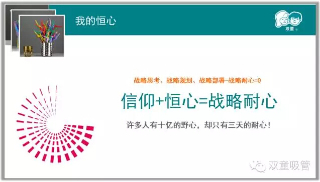 其次在分享過程中當(dāng)家人樓總也談到:做企業(yè),要善于把自己的行業(yè)細(xì)分再細(xì)分,然后在這個(gè)細(xì)分的行業(yè)里做到NO.1。在這個(gè)過程中,要把自己看小,才能把舞臺(tái)做大!