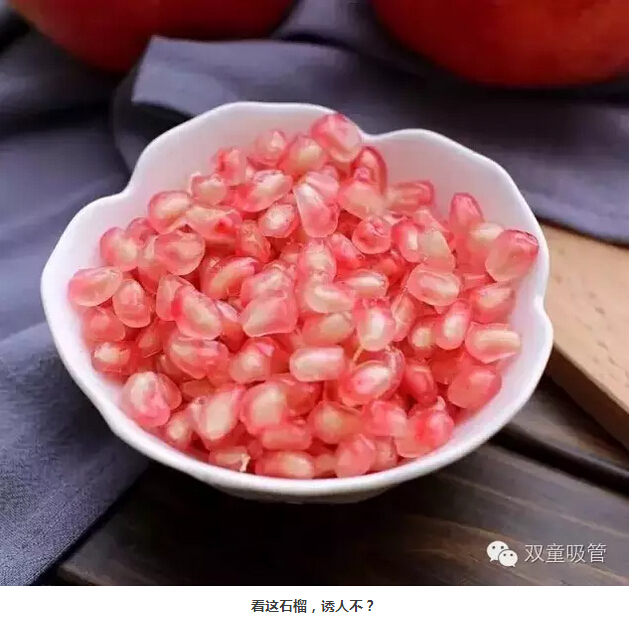 石榴可謂全身是寶:葉子可止瀉、皮曬干可補(bǔ)血養(yǎng)氣,還有疏肝柔肝、寧心定志的作用呢!石榴的寓意更是美好,有著紅紅火火、多子多孫的寓意!要說石榴的剝法,吸管妞做為專業(yè)吃貨,自然有妙招!快戳下圖↓