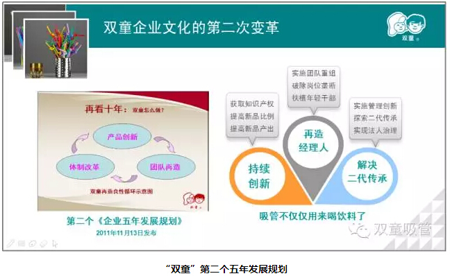 為了讓“雙童”更加堅守實業(yè),2005年“雙童”出臺了第一個五年發(fā)展規(guī)劃,其中就提到了專注發(fā)展,不是立下雄心壯志,而是“做減法”;2011年又出臺了第二個五年發(fā)展規(guī)劃,通過產(chǎn)品創(chuàng)新、團隊再造、體制改革三個方面進行發(fā)展。