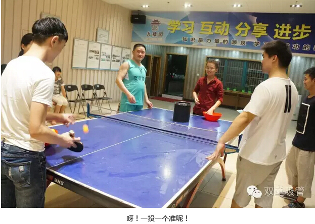 乒乓球社團成立于2015年5月12日,社團成立以來組織了多次社團活動。乒乓球不愧于國球,這普及率真當是全民的!“雙童”員工們十有八九都會打呢!別以為我們的乒乓球賽只是打打乒乓球哦,運送乒乓球、吹乒乓球、夾乒乓球……只有你想不到,沒有做不到呀!