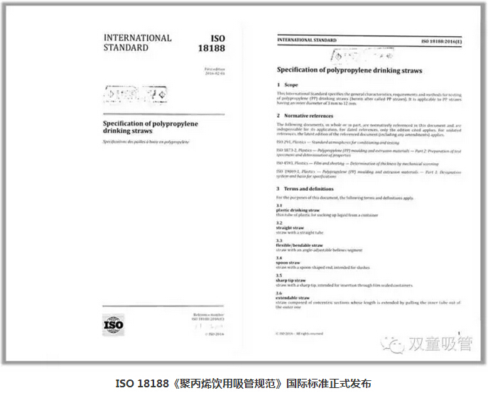 文章中也提到了今年七月份,由“雙童”主導(dǎo)并起草的《聚丙烯飲用吸管規(guī)范》ISO國(guó)際標(biāo)準(zhǔn)向全球162個(gè)國(guó)家和地區(qū)正式發(fā)布,成為名副其實(shí)的國(guó)際行業(yè)游戲規(guī)則的制訂者之一!