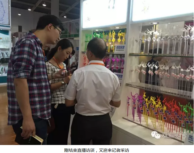 當家人牛氣,8個展位的大手筆外加經(jīng)典的雙童展位設計,自然吸引了眾多客商的目光!現(xiàn)場來往的商客可謂是絡繹不絕啊!新奇的各色吸管更是吸引了大把的新客戶,當然了,我們的老客戶也是每年必來雙童展會轉(zhuǎn)轉(zhuǎn),聯(lián)絡一下感情,看一下我們的新產(chǎn)品!