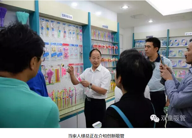 來者皆是客,當(dāng)家人樓總自然是熱情接待。一行人先是來到了樣品房。一進(jìn)樣品房,大家就被琳瑯滿目的各類吸管所吸引,尤其是各類功能情趣的創(chuàng)新吸管,更是讓每個(gè)人都嘖嘖稱奇,贊嘆“雙童”的創(chuàng)新力之強(qiáng)!