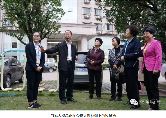 首先,當(dāng)家人樓總帶各位領(lǐng)導(dǎo)參觀起了“雙童”的節(jié)能降耗措施。在我們的中水回收池邊,給眾人講解了我們“雙童”的廢水循環(huán)利用的系統(tǒng)和原理。在聽到我們的“雙童”一號樹的下面還有一個土壤層生物沉淀過濾池可以進(jìn)行廢水過濾時,大家紛紛敬佩當(dāng)家人樓總在建廠之初的設(shè)計!