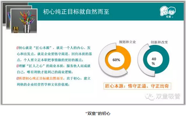 當(dāng)家人樓總說道:“商海浮沉中難得一份平常心,其實(shí)人的一輩子精力有限,把一根吸管真正做好就行了。” “雙童”的成長(zhǎng)也是伴隨著不斷的放棄,一切以商業(yè)本質(zhì)為考核,不為虛名所拖累,以博大的胸懷把一件事情做好!
