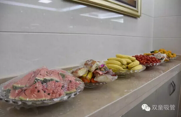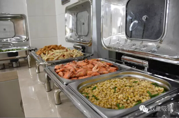 晚上7點半,壽星們走進由后勤科掛上氣球、貼上標語,稍微裝扮一下就顯得溫馨無比的食堂自助餐區(qū),看到實木的餐桌上擺上了瓜子花生,一旁柜臺上的自助餐盤里盛滿了豐盛的菜肴,酒水瓜果應(yīng)有盡有,頓時眼睛里都放光??!還有什么好說的呢?開吃!?。?/span>