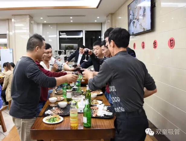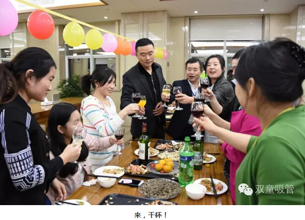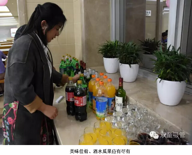吃喝,吃喝,光吃不行還得喝!“酒水飲料”自然是調(diào)節(jié)氣氛的最佳,五星級食堂舉辦的第一次生日會,自然要幾位“五星級的領(lǐng)導(dǎo)”陪同!你看啊,各個車間的主要領(lǐng)導(dǎo)都來了??!他們的宗旨就是:一定要讓壽星們不光吃的好,還要喝的盡興!領(lǐng)導(dǎo)們端著酒杯笑嘻嘻的對每位壽星說:“沒事,喝嘛,喝醉了明天啥時候起來,啥時候上班!” 壽星們,你們還不趕緊放開了量,爭取也灌倒一兩位領(lǐng)導(dǎo)?。。?!