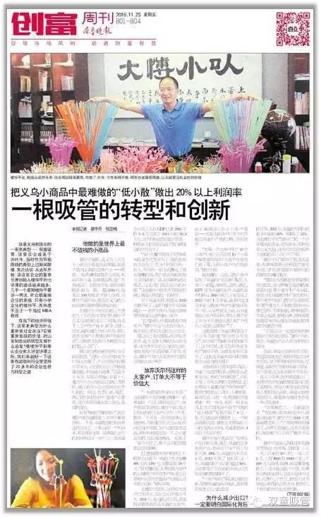 樓仲平做的,是義烏上百萬(wàn)個(gè)小商品中看起來(lái)最難做,也最不值得去做的邊緣產(chǎn)業(yè)——吸管。一根普通吸管售價(jià)幾厘錢,利潤(rùn)只有幾毫,很難建品牌,連廣告都沒(méi)法打。在批發(fā)市場(chǎng),最便宜的吸管13元一箱,一箱2500根,每賣出100根吸管才掙幾分錢。而樓仲平最開始,就是在義烏的小商品城里擺攤賣吸管起步的。