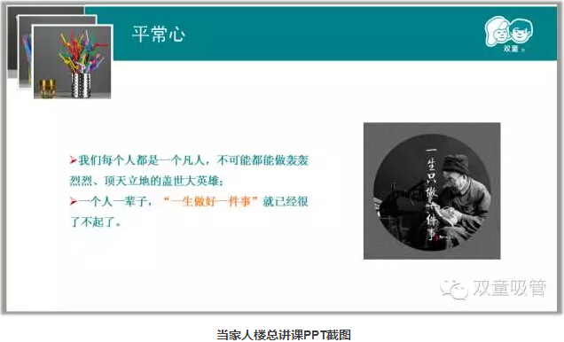 這是義烏制造業(yè)的一家老典型——雙童吸管,這家企業(yè)成名于2005年,當(dāng)時(shí)作為節(jié)能降耗的典型上過(guò)新聞聯(lián)播、焦點(diǎn)訪談。從去年開始,請(qǐng)這家企業(yè)的董事長(zhǎng)兼創(chuàng)始人樓仲平外出講課的邀請(qǐng)?jiān)絹?lái)越多,幾乎一個(gè)星期樓仲平要講一兩次,聽眾都是做企業(yè)的老板。只有小學(xué)文化的樓仲平,其熱度不亞于一個(gè)當(dāng)紅MBA教授。