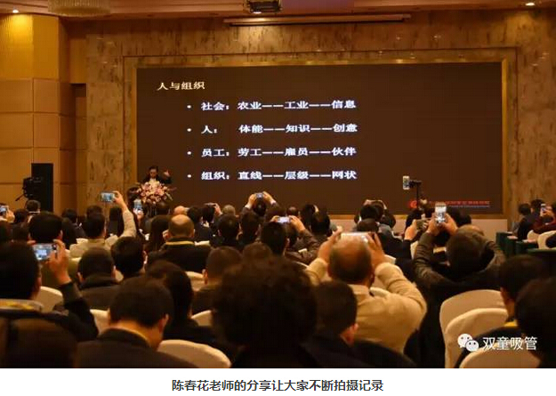 接下來,趙曙明教授從人力資源的角度做了主題演講《共享經(jīng)濟下企業(yè)人力資源管理》。說起趙曙明老師,他其實是陳春花教授的老師,也是現(xiàn)代管理學之父彼得·德魯克的學生,是中國德魯克管理理論的布道者!趙老師講到共享經(jīng)濟就是這種趨勢發(fā)展下的產(chǎn)物之一,并提出了共享經(jīng)濟在組織所面臨的三大挑戰(zhàn)和三大對策。企業(yè)做出改變迫在眉睫,管理不是“管理”人,而是“領導”人;管理的目標是充分發(fā)揮和利用每個人的優(yōu)勢和知識!