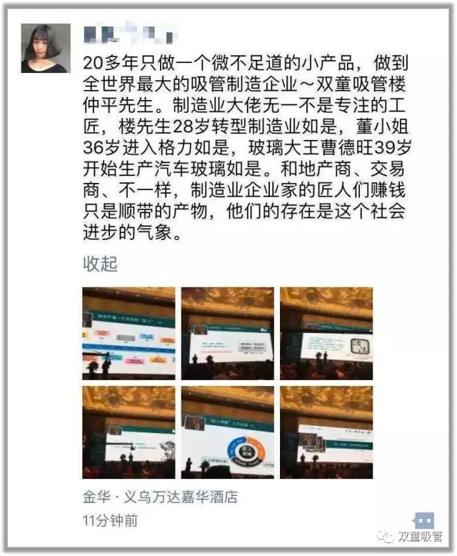 盡管課程的分享時(shí)間不長(zhǎng),但樓總的“匠人思維”受到了眾多創(chuàng)業(yè)者的好評(píng),大家紛紛贊嘆樓總20多年堅(jiān)持把一根吸管做到極致的精神!吸管妞也希望,樓總的“匠心”能夠鼓勵(lì)和影響到更多的人成為一個(gè)個(gè)“匠人”!